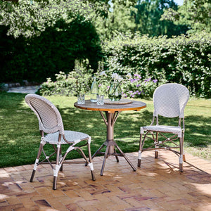 Nicole er et lille klassisk cafébord, inspireret af den charmerende franske caféstil. Bordet er designet til restauranter, brasserier og caféer, men er også velegnet til den private have, terrasse og altan.