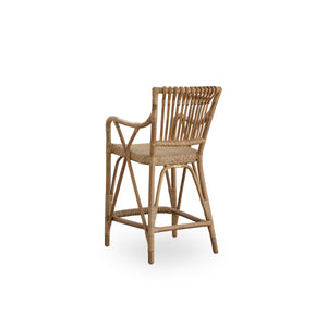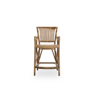 Blues køkkenbarstol er lavet af indonesisk bæredygtig rattan. Stolen er udført i farven antik, som er utrolig hyggelig og passer til alle træsorter. Sædet er flettet og ryglænet er håndlavet med viklinger på et stel af rattan af dygtige kurvemagere. Blues counter er en køkkenbarstol med både armlæn og fodstøtte. Stolen passer perfekt i et samtalekøkken, men kan naturligvis også bruges i hjemmebaren. Barstolen er desuden stærk og komfortable, og er også velegnet til brug i hoteller eller restauranter. Barstolen er designet af Sika-Design, der har hovedsæde på Fyn nær Rynkeby.
