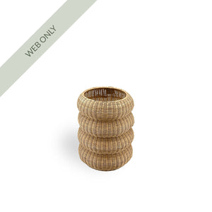 Mel er en stor dekorativ kurv med en højde på 56 cm. Kurven er håndflettet i naturmaterialet rattan og der kan derfor være små variationer i farve og form.