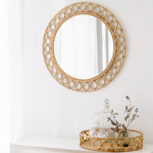 Mira er et dekorativt spejl designet af Sika-Design. Spejlet har smukke håndflettede detaljer lavet af indonesisk rattan. Mira passer smukt ind i entreen, på det lille badeværelse eller som en del af vægpynten i stuen.