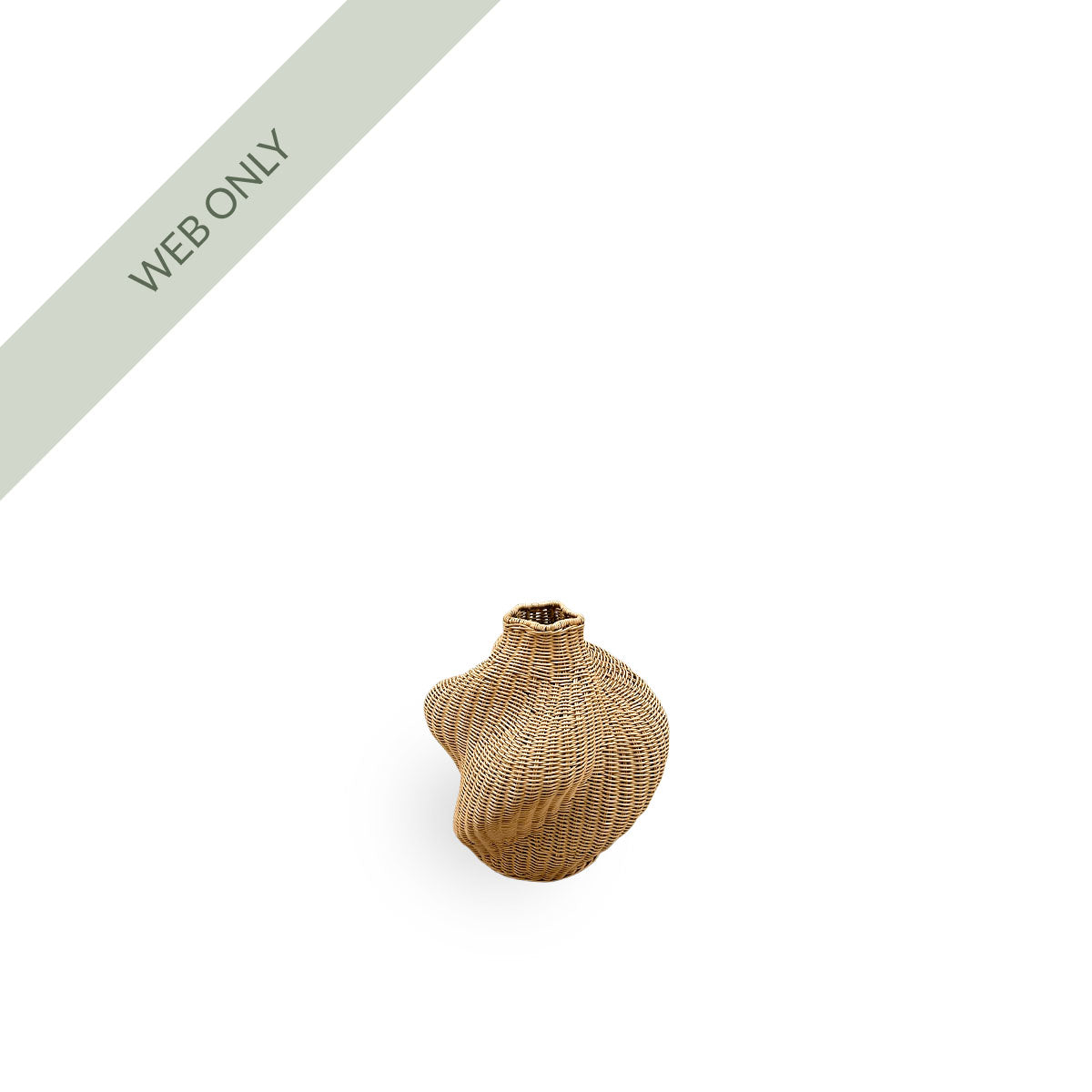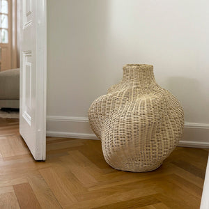 Solaris er en dekorativ kurv med bløde, organiske former, der egner sig godt til tørrede eller kunstige blomster. Kurven er håndflettet i naturmaterialet rattan og der kan derfor være små variationer i farve og form.