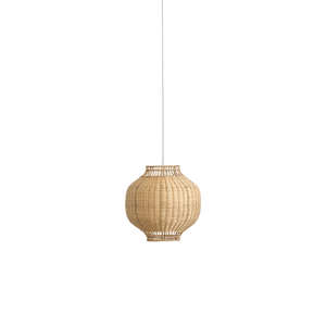 Vores Tomos lampeskærm er designet af Jin Kuramoto. Lampeskærmen er håndlavet i indonesisk rattan og har en indvendig stålramme, der giver den en god vægt, der sikrer, at den hænger pænt og stabilt.