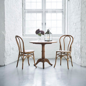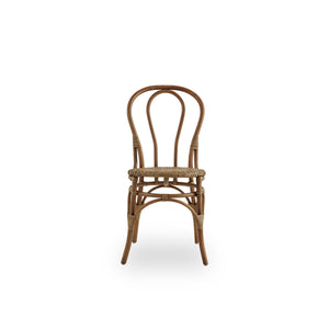 Lulu spisebordsstol i antik. Sika-Design har nytænkt den klassiske bistro stol, ved at lave den i det bæredygtige og naturlige materiale rattan. Vores design har gjort stolen meget let og unik med sit enkle udtryk. Dens smukke buer og former gør den til en fryd for øjet, og dens lette udtryk gør at stolen også kan placeres i små kroge og hjørner som en ekstra stol i hjemmet. Stolen er lavet af indonesisk rattan og er håndlavet med stor ekspertise. Det meget stærke materiale rattan, gør at stolen har en lang levetid, hvilket også bidrager til stolens bæredygtighed. Lulu bistro stol er uden armlæn og passer derfor også ind i de mindre hjem, hvor der ikke er plads til store møbler.