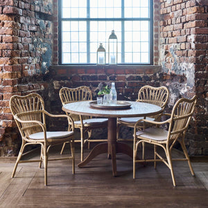 Margret Spisebordsstol er en elegant kurvestol i dansk design og en del af Sika-Designs Originals kollektion. Originals kollektionen repræsenterer designs af kurvemøbler, som alle er designet af Sika-Design selv. Margret stolen har et højt, bredt ryglæn og smukke bøjede armlæn, der giver en god komfort og ekstra støtte. Stolen er en klassisk kurvestol, der med sine detaljerige viklinger kan skabe hygge i både spisestuen, udestuen og i sommerhuset.