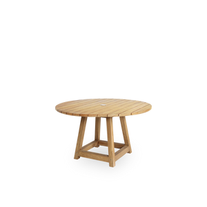 Vores runde George spisebord Ø120 cm er et smukt havebord lavet af teaktræ, der er kendt for sin høje styrke og smukke glød. I midten af bordet er der et hul til parasol med en 5 cm diameter, som kan dækkes med den elegante medfølgende top.