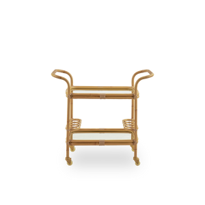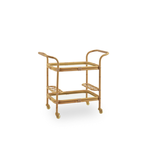 Carlo Barvogn signalerer blik for æstetik og værtsskab. Den er ideel til opbevaring og servering, og hjulene gør den let at flytte rundt på terrassen. Den dekorative og praktiske rullevogn er en efterspurgt model i indendørsversionen i rattan. Nu ruller vi den ud som en nyhed i Alu-Rattan, hvor den fås i den nye farve: Natural.