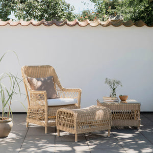 Dawn Exterior er en udendørs skammel og en del af Sika-Designs romantiske Georgia Garden kollektion. Georgia Garden kollektionen repræsenterer et stort udvalg af charmerende udendørs kurvemøbler, der er inspireret af den britiske kolonistil og af gamle danske pilefletsmøbler.