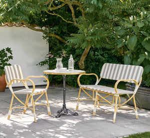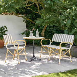 Bistro Exterior bænken er en del af Sika-Designs Alu Affäire-kollektion, som præsenterer et unikt udvalg af charmerende udendørs bistro- og cafémøbler.