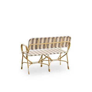 Bistro-bænkens flotte, buede armlæn giver god komfort og ekstra støtte. Bænken er designet til brasserier, cafeer og restauranter, men er også velegnet til det almindelige hjem. Bistro Exterior bænken er håndlavet i aluminium og ArtFibre, hvilket gør den modstandsdygtig over for alle vejrtyper.