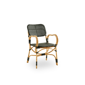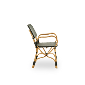 Bistro-stolen er designet med smukke bøjede armlæn, der giver en god komfort og ekstra støtte. Stolen er en raffineret spisebordsstol, som er designet til brasserier, caféer og restauranter, men den er også velegnet til det almindelige hjem. Stolen er lavet til indendørs brug, men kan også anvendes under halvtag og parasol udendørs. Her er det dog vigtigt at møblerne har mulighed for at blive helt tørre, hvis de bliver udsat for fugt.