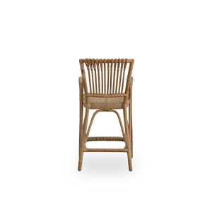 Blues køkkenbarstol er lavet af indonesisk bæredygtig rattan. Stolen er udført i farven antik, som er utrolig hyggelig og passer til alle træsorter. Sædet er flettet og ryglænet er håndlavet med viklinger på et stel af rattan af dygtige kurvemagere. Blues counter er en køkkenbarstol med både armlæn og fodstøtte. Stolen passer perfekt i et samtalekøkken, men kan naturligvis også bruges i hjemmebaren. Barstolen er desuden stærk og komfortable, og er også velegnet til brug i hoteller eller restauranter. Barstolen er designet af Sika-Design, der har hovedsæde på Fyn nær Rynkeby.