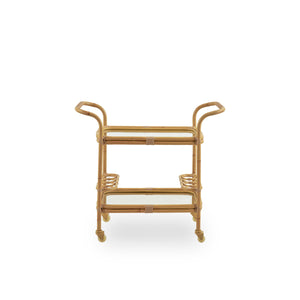 Carlo Barvogn signalerer blik for æstetik og værtsskab. Den er ideel til opbevaring og servering, og hjulene gør den let at flytte rundt på terrassen. Den dekorative og praktiske rullevogn er en efterspurgt model i indendørsversionen i rattan. Nu ruller vi den ud som en nyhed i Alu-Rattan, hvor den fås i den nye farve: Natural.