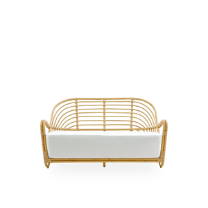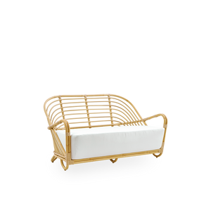 Charlottenborg Exterior Sofaen er designet af Arne Jacobsen i 1937, og er udført i materialerne Alu-Rattan og ArtFibre.