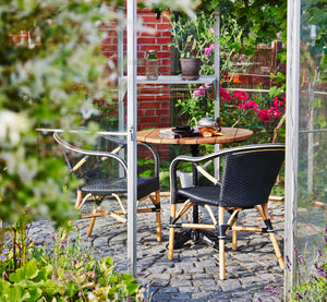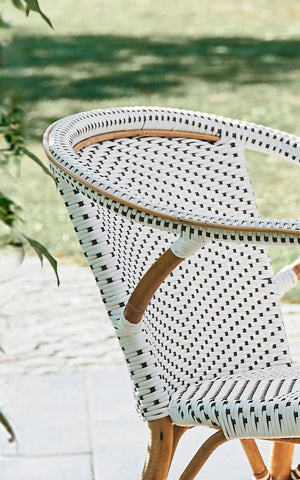 Affäire kollektionen er inspireret af vores egne designs fra 1950´erne og den charmerende bistro stol som ses overalt i Paris. Vi fletter vores Affäire stole med det fantastiske ArtFibre, der er tilgængelig i et større udvalg af farver, der er kan sammensættes i utallige kombinationer. ArtFibre er kunstige fibre lavet af vedligeholdelsesfrie polyethylen, der kan modstå solens UV-stråling. Kombinationen af Artfibre og rattan giver en flexibilitet, styrke og komfort. De forskellige fletkombinationer giver en hyggelig stemning og mulighed for et unikt udseende. Stolen er en raffineret spisebordstol som er designet til brasserier, cafeer og restauranter, men er også velegnet til privatbrug. Stolen kan bruges udendørs i overdækkede områder, men bør ikke udsættes for regn og slud. Affaire stole skal opbevares indendørs om vinteren.