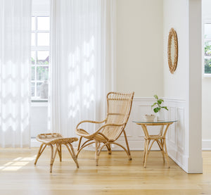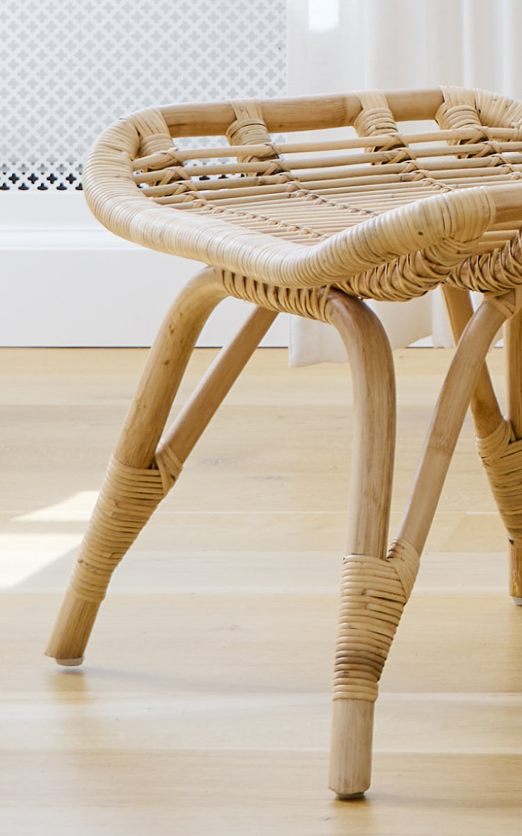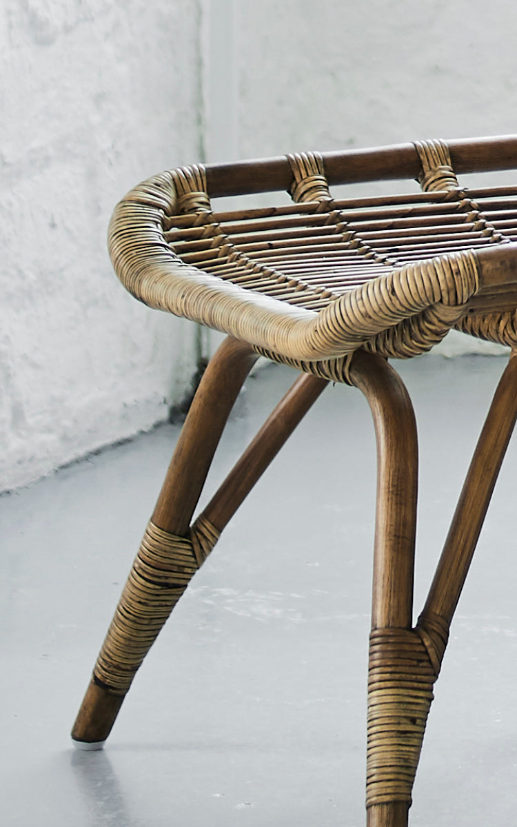 Skamlen er håndlavet i bæredygtigt indonesisk rattan og flet af dygtige kurvemagere. Sika-Design anvender nøje udvalgt rattan til møbelproduktion for at sikre den højeste kvalitet. Rattan bliver ofte sammenlignet med bambus, men modsat bambus som er hult, så er rattan er massivt materiale. Rattan er et bemærkelsesværdigt stærkt og uopslideligt materiale, og det er også med til at gøre møblet bæredygtigt. Her fås et unikt designmøbel der holder i generationer.