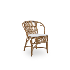 Stolen er håndlavet med stor ekspertise, og de fine detaljerige viklinger i sæde og ryg er lavet på et stel af rattan. Sika-Design anvender nøje udvalgt rattan til møbelproduktion for at sikre den højeste kvalitet. Rattan bliver ofte sammenlignet med bambus, men modsat bambus som er hult, så er rattan er massivt materiale. Rattan er et bemærkelsesværdigt stærkt og uopslideligt materiale, og det er også med til at gøre møblet bæredygtigt. Her fås et unikt møbel der kan holde i generationer.Der kan tilkøbes en hynde til Robert i udvalgt stof, syet på vores danske systue. Vi tilbyder også at sy hynde i eget stof - kontakt os gerne for at få oplyst stofforbrug.