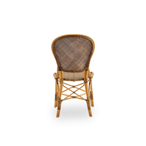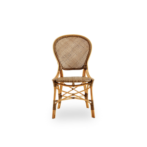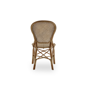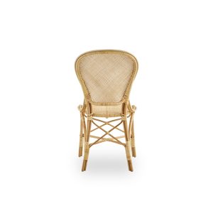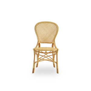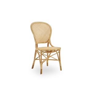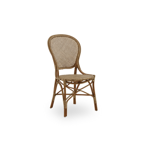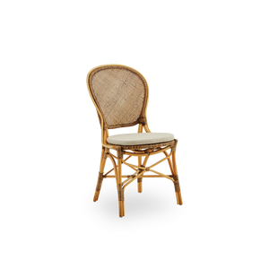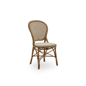 Stolen er håndlavet i rattan, og anbefales til brug indendørs samt overdækkede områder udendørs. Hvis rattan udsættes for regn, bliver det gråt og påvirker holdbarheden.